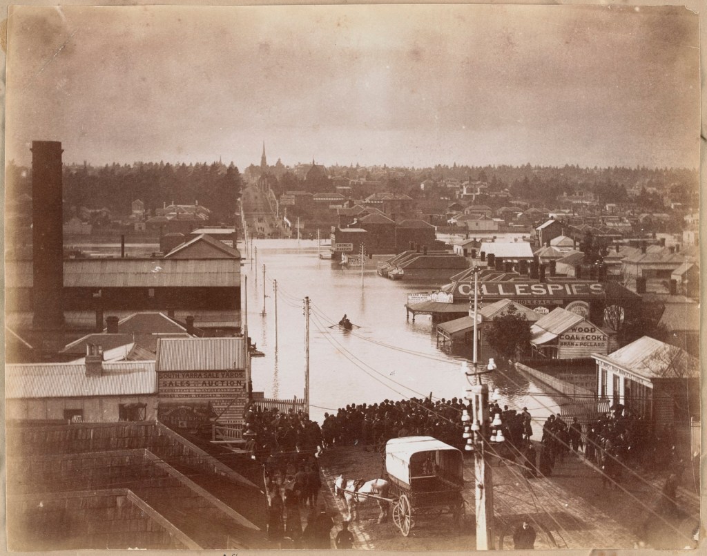 The view from William’s seat in the Royal Botanic Gardens, Melbourne Photo by Brenda Hall, 2017The gardens in 1891, Photographer Adam Rechberg, State Library of Victoria, Group ID 1888845Bourke St, looking west with Coles Book Arcade on left, circa 1900 State Library of Victoria, ID 1637182 Coles Book Arcade, Postcard, Maker unknown, City of Melbourne Art and Heritage CollectionThe Great Flood of 1891, State Library of Victoria, Group ID 2602097The Great Flood of 1891, State Library of Victoria, Group ID 2602097Junction, St Kilda and Punt Roads, circa 1892, State Library of Victoria ID 1697576